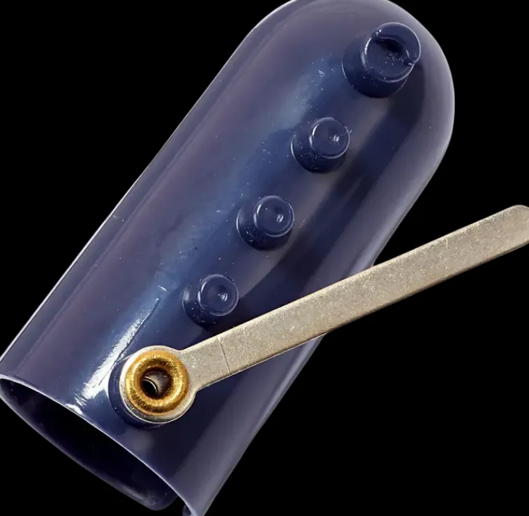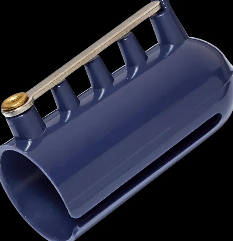 Langanohjain On Apuväline, Kun Neulotaan Kirjoneuletta Neljällä Langalla. Estää Neulelangan Sekaantumisen Neulonnan Aikana. Langanohjain Istuu Hyvin Sormeen. Ohjaimen Päällä On Aukot Langoille. Salpa Sulkee Aukot Ja Langat Pysyvät Paikoillaan.