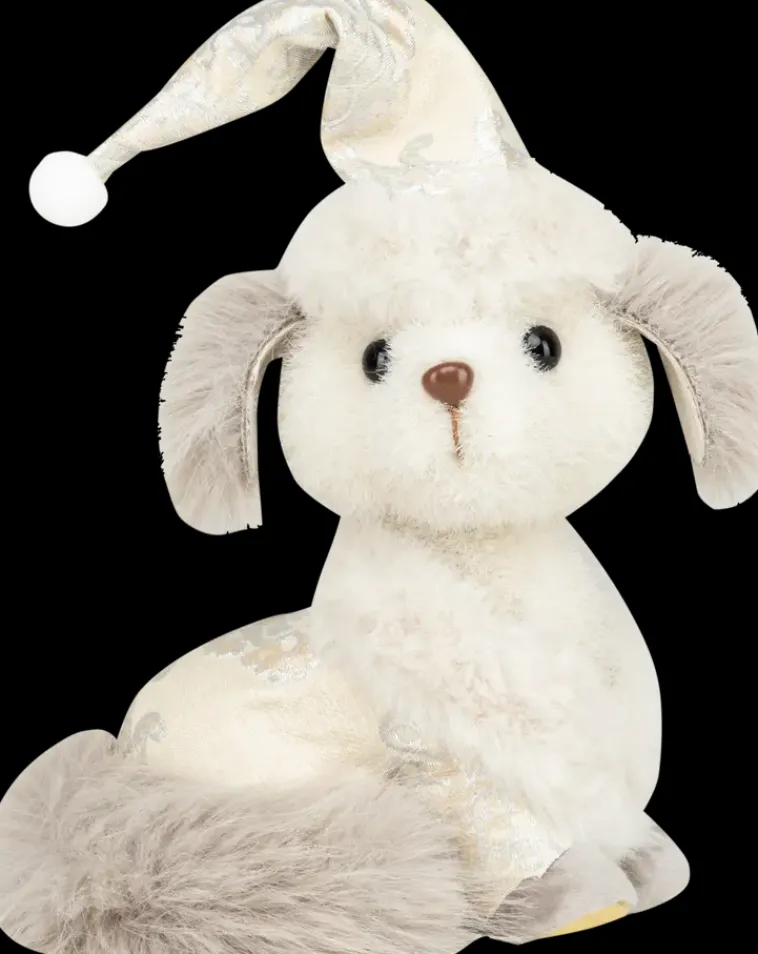 Suloisella Pikkukoiralla On Päässään Tonttulakki. Koko 14 X 11 X 21 Cm. Vain Koristekäyttöön.
