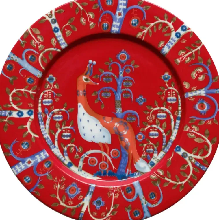 Iittala Taika-Lautanen Punainen (22 Cm), Jonka Runsas Kuviointi Sopii Erinomaisesti Niin Juhlakattauksiin Kuin Jokapäiväiseen Käyttöön. Konepesun Kestävä. Klaus Haapaniemen Taika-Sarja Kuvioiden Taianomaiset Yksityiskohdat Ja Tarinan Moniulotteisuus Avautuvat Käyttäjälle Vähitellen. Sarjassa Heikki Orvolan Aika-Sarjan Pelkistetyt Muodot Kohtaavat Tarujen Fantasiamaailman.