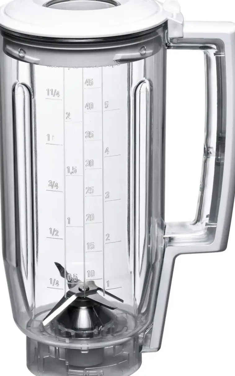Bosch Muz5Mx1 Tehosekoittimen Muovikannu, Jonka Tilavuus On 1,25L. Reunassa Mittasteikko. Kannessa Täyttöaukko. Soveltuu Myös Jääpalojen Murskaamiseen. Lisävaruste Bosch Mum5-Yleiskoneeseen.