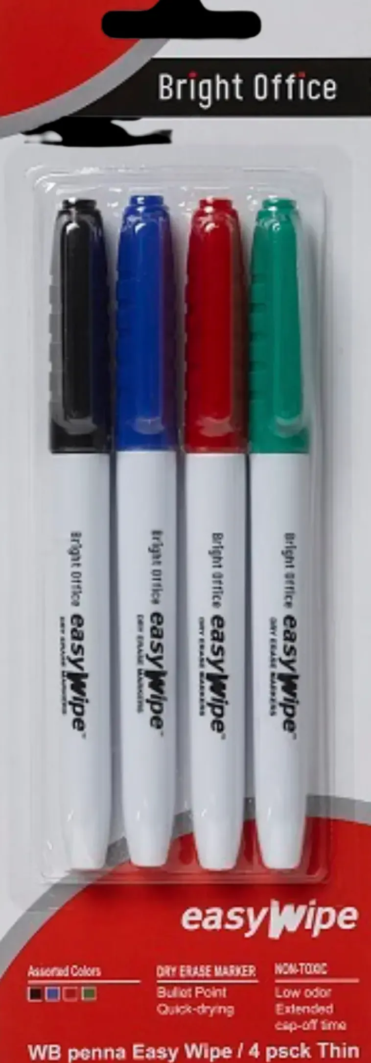 Miedontuoksuinen, Myrkytön Ja Nopeasti Kuivuva Muste. Helppo Pyyhkiä Taulupyyhkimellä Tai Liinalla. Pyöreä Kärki, Viivan Leveys N. 1-2 Mm.Värilajitelma: Punainen, Sininen, Vihreä Ja Musta.