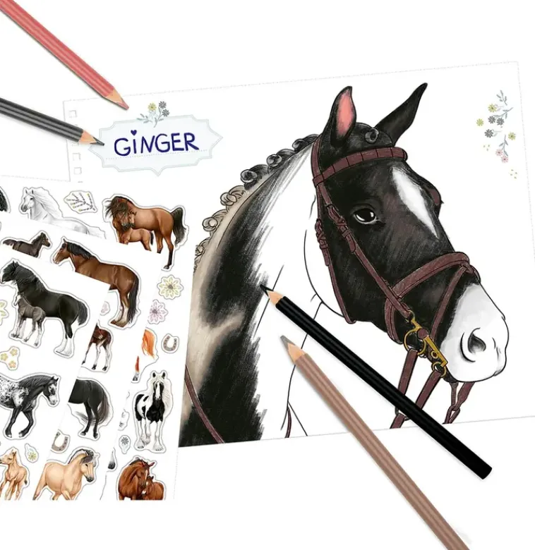Miss Melody Värityskirjassa Voit Värittää Kirjan Sivuilla Seikkailevia Hevosia. Mukana Myös Suuri Määrä Tarroja, Joilla Voit Viimeistellä Työsi!
