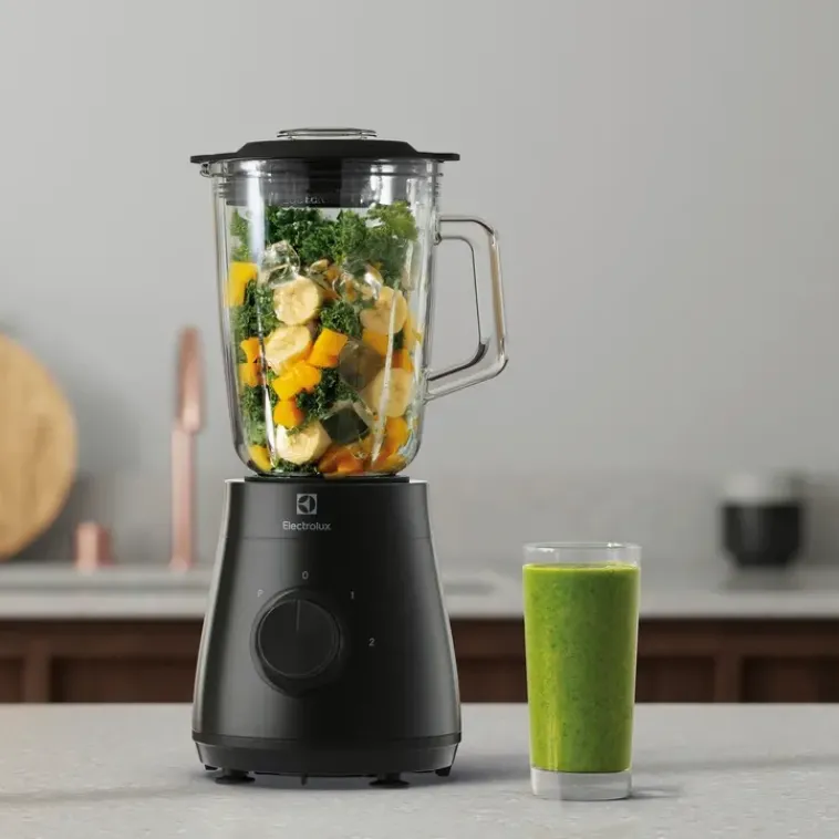 Electrolux E3Tb1-4Gg Tehosekoitimella Valmistat Nopeasti Smoothiet Tai Murskaa Jäät. Optimoitu Truflow® -Terä Ja Voimakas Moottori Sekoittavat Ainekset Pehmeän Tasaiseksi Ja Hyvän Makuiseksi Juomaksi