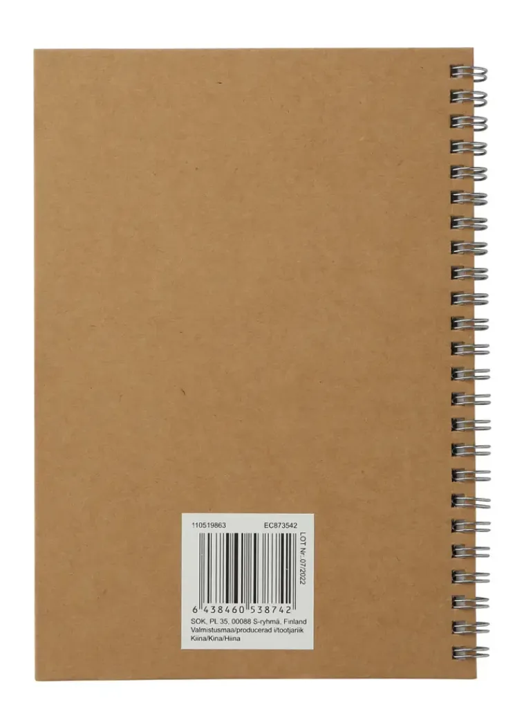 Kierrätetystä Paperista Valmistettu Kierremuistikirja. A5-Kokoinen Muistikirja, Jossa 80 Viivoitettua Sivua. Kirjan Mitat: 21 X 15,5 X 1,6 Cm.