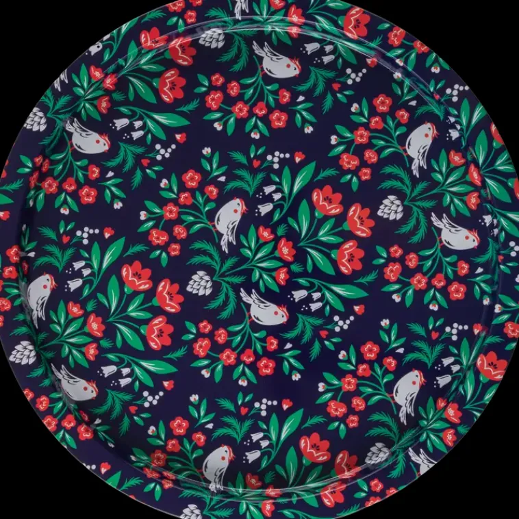 Pyöreä House Sointu -Tarjotin Tyylikkäällä, Jouluaiheisella Kuviolla. Tarjottimen Halkaisija 32 Cm Ja Korkeus 1,6 Cm. Valmistettu Tinatusta Teräksestä. Vain Käsinpesu.Yhdistä Halutessasi Muihin House Sointu -Keittiötarvikkeisiin.