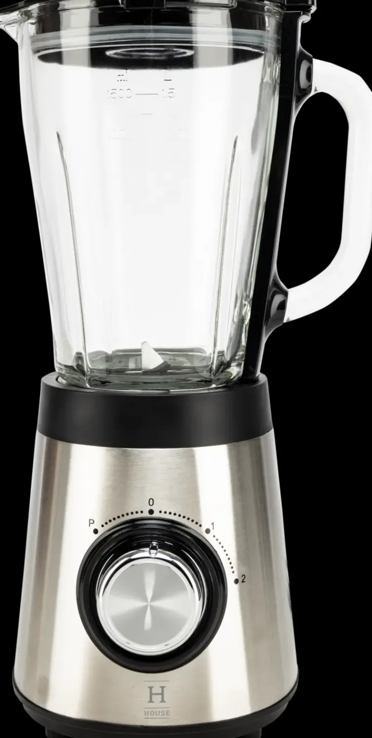 House-Tehosekoitin Sekoitus- Ja Leikkuutoiminnoilla. Laitteessa On 1,5 Litran Lasikannu Ja Ruostumattomasta Teräksestä Valmistetut Terät. Valittavissa Kaksi Nopeutta Ja Pulssitoiminto.