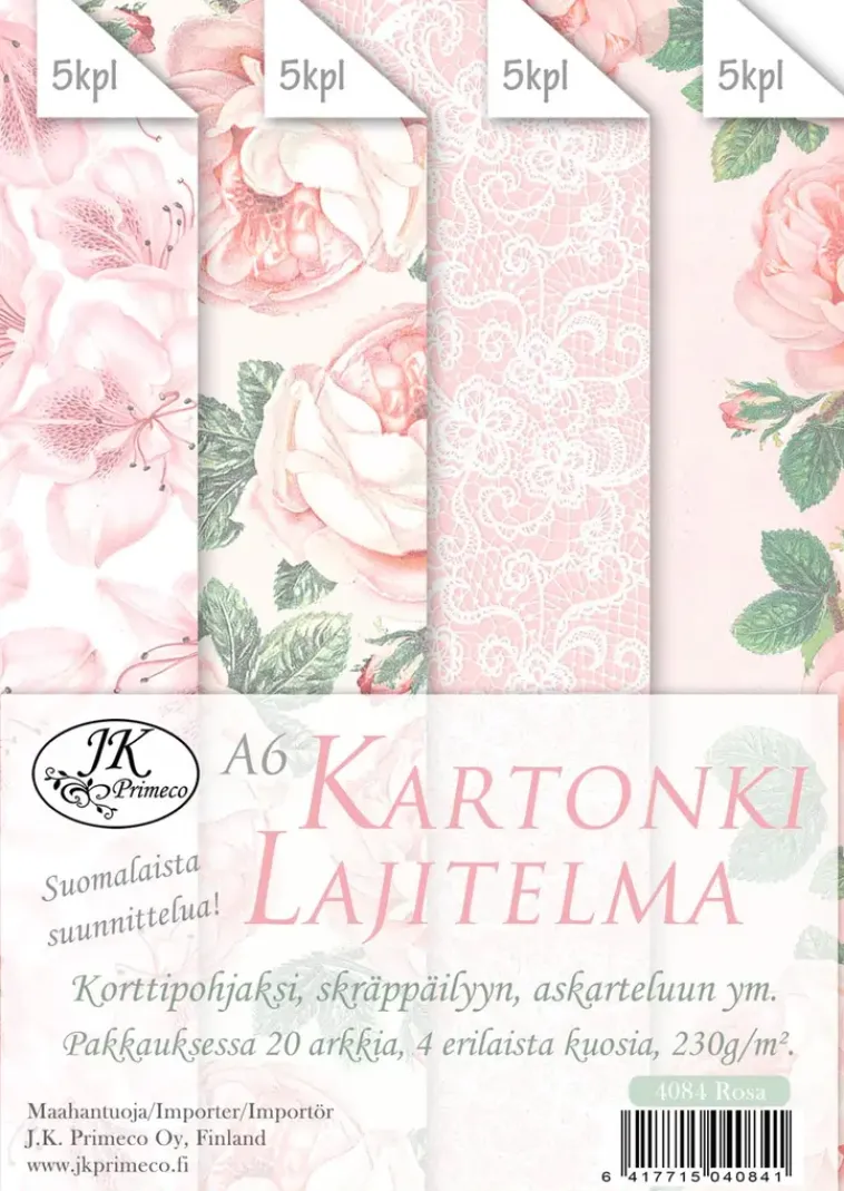 J.K. Primeco Askartelutarvikkeet-A6 Kartonkilajitelma Roosa 20Ark.
