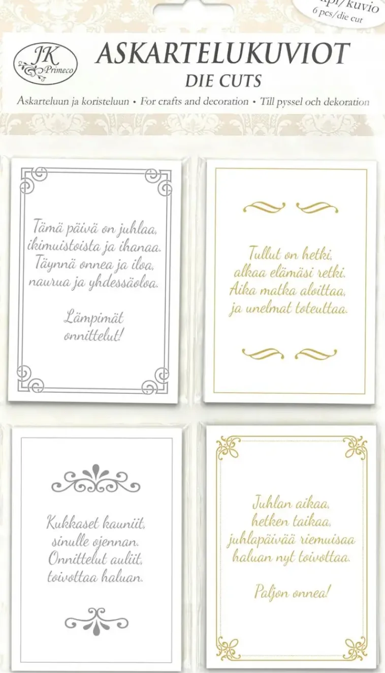 Be the first to review “J.K. Primeco Askartelutarvikkeet-Askartelukuviot Toivotukset Kulta/Hopeafolio” Peruuta vastaus