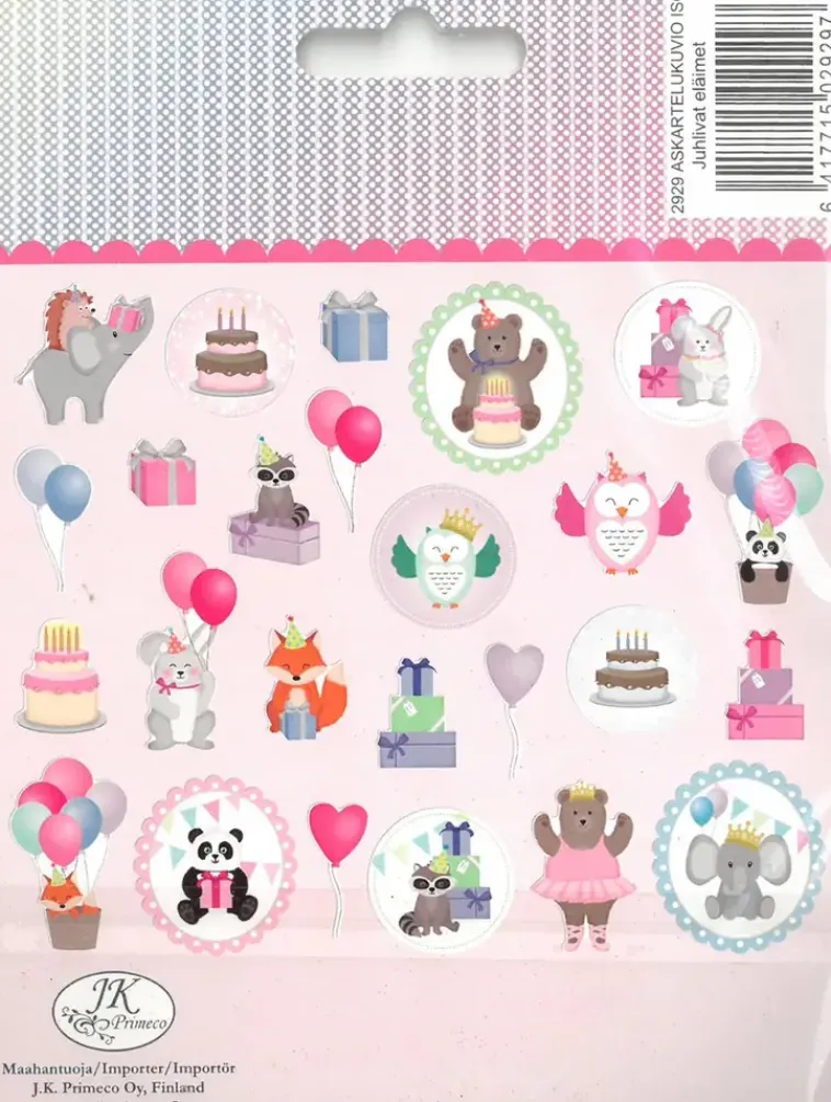 J.K. Primeco Askartelutarvikkeet-Isot Askartelukuviot Juhlivat Elaimet 25Kpl/Pkt