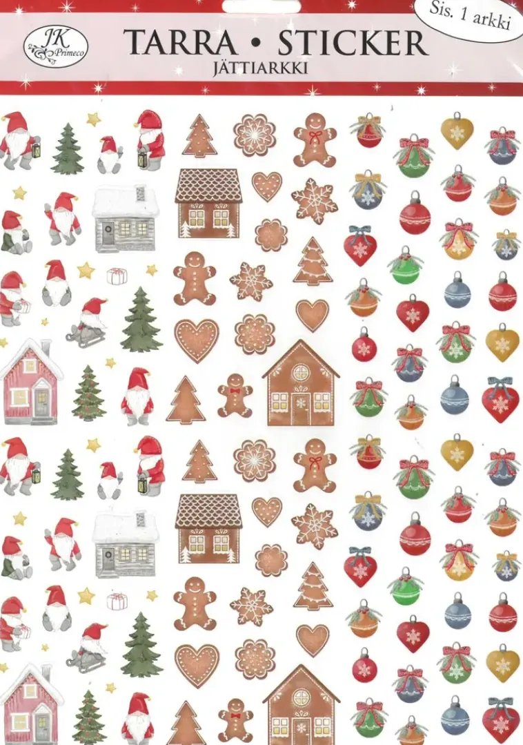 Jättitarrat Askarteluun Ja Koristeluun. Pakkaus Sisältää Yhden Arkin Erilaisia Paperisia Tarroja. Arkin Koko On N. 25Cm X 20,5Cm.