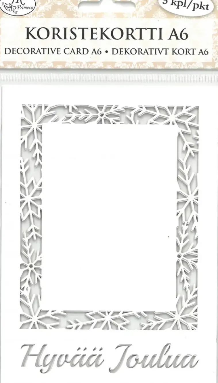J.K. Primeco Askartelutarvikkeet-Koristekortti A6 Lumihiutalereuna Ja Teksti 5 Kpl