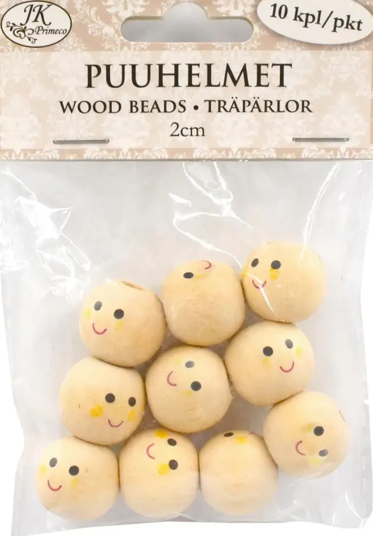 J.K. Primeco Askartelutarvikkeet-Puuhelmet 2 Cm Hymynaamat 10 Kpl