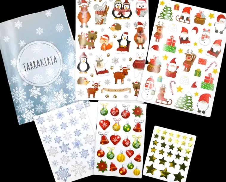 Tarrakirja Tarrojen Säilyttämiseen Ja Keräilemiseen. Pakkaus Sisältää Yhden A5-Kokoisen Tarrakirjan, Jossa On 10 Arkkia Eli 20 Sivua Sekä 5 Arkkia Erilaisia Jouluaiheisia Tarroja. Tarrakirjan Sivuissa On Muovipinnoite, Jolloin Tarrat Ovat Helposti Uudelleen Käytettävissä.