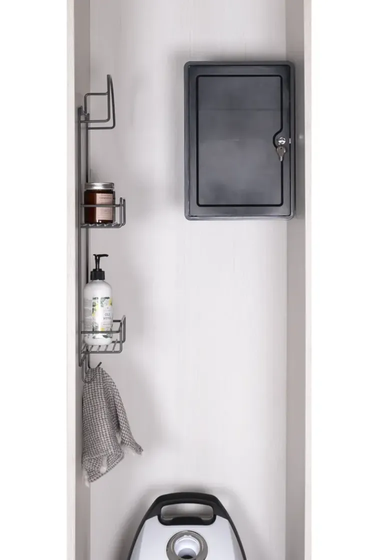 Lukittava Kaappi Soveltuu Mm. Kodin Lääkkeiden Ja Kemikaalien Turvalliseen Säilytykseen. Väri Musta/Antrasiitti. Lukittava Kaappi Kiinnitetään Ruuveilla Joko Pysty- Tai Vaaka-Asentoon. Kaappi On Abs-Muovia. Valmistettu Suomessa.