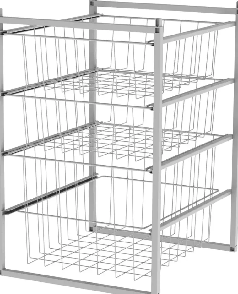 Kehikko, Jossa 2 Kpl 140 Mm Korkeita Koreja Ja 1 Kpl 285 Mm Korkea Kori. Vapaasti Seisova Koritorni Kaapin Sisään, Vaatehuoneeseen Tai Liukuovikaapistoon. Leveys 450 Mm, Syvyys 500 Mm, Korkeus 675 Mm. Väri Valkoinen.