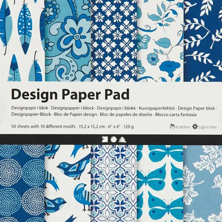 Kuviopaperilehtiö, Arkki 15,2X15,2 Cm, 120 G, Sininen, 50Ark
