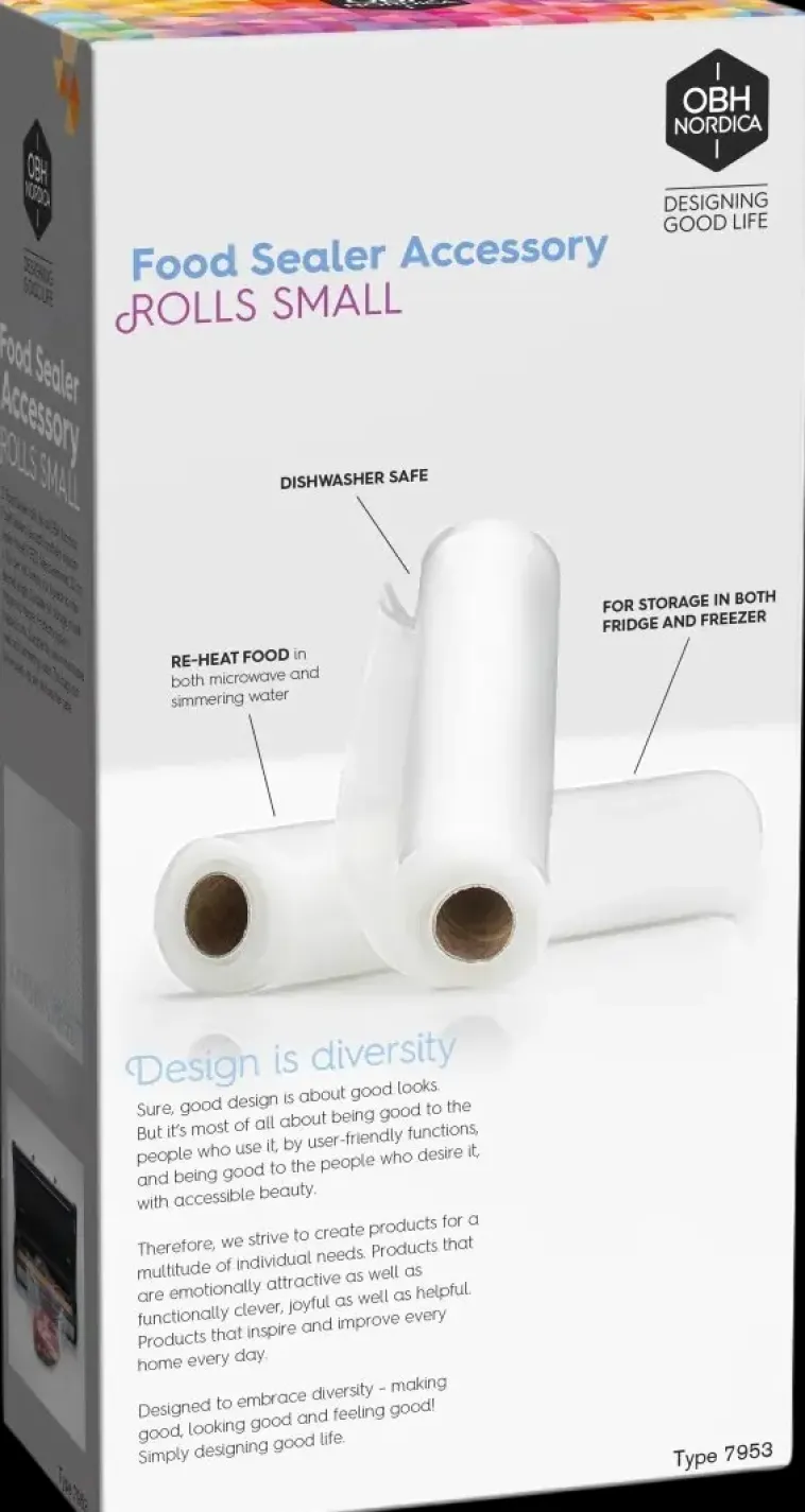 Food Sealer -Pussirullat Obh Nordican Tyhjiöpakkaajaan. Voit Itse Valita Food Sealer -Pussin Koon. Soveltuu Elintarvikkeiden Säilyttämiseen Jääkaapissa Ja Pakastimessa. Suojaa Elintarvikkeita Kylmävaurioilta. Soveltuu Elintarvikkeiden Lämmittämiseen Mikroaalto-Uunissa Sekä Poreilevassa Vedessä, Jonka Lämpötila On Hieman Kiehumispisteen Alapuolella. Pussit Ovat Uudelleenkäytettäviä Ja Konepesun Kestäviä. 2 Kpl Pussirulla: 22 Cm X 3 M/Rulla.