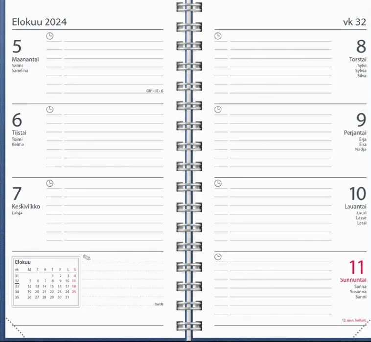 Pellavatekstiilikansi. Kalenterin Aukeamalla Yksi Viikko Ja Kuluvan Kuukauden Kalenteritaulukko. Kalenteri Sisältää Nimipäivät, Kansalliset Pyhäpäivät, Liputuspäivät, Kuun Vaiheet, Vuosisuunnitelmat Kuluvalle Ja Seuraavalle Vuodelle, Yleiset Pyhäpäivät Euroopassa, Kalendaariset Tiedot, Suomen Kartta, Välimatkataulukon Ja Puhelinmuistion. Kalenteriosa: Vk 51 2023-Vk 1 2025. Suomenkielinen. Parikierresidottu. Koko: 83X158 Mm.