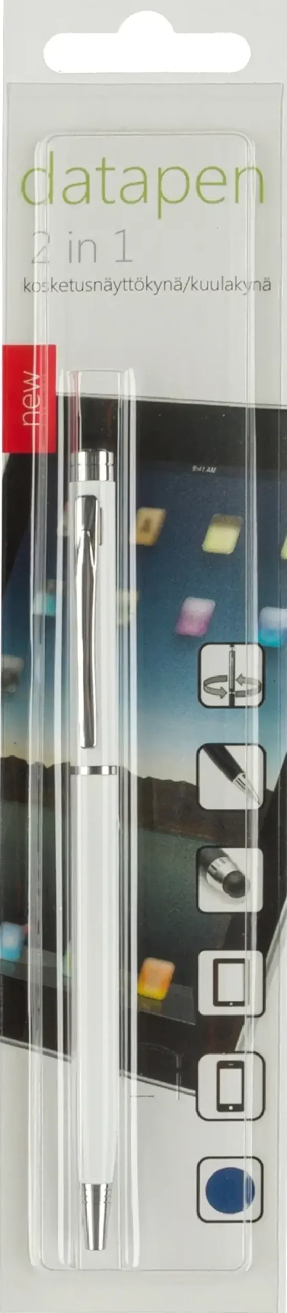 Datapen Kosketusnäyttökynä- Ja Kuulakynä Kierremekanismilla, Kynässä Sininen Muste, Pakattu Blisteriin.Yhteensopiva Yleisimpien Tablettien Ja Älypuhelinten Kanssa, Pitää Näytön Tahrattomana.