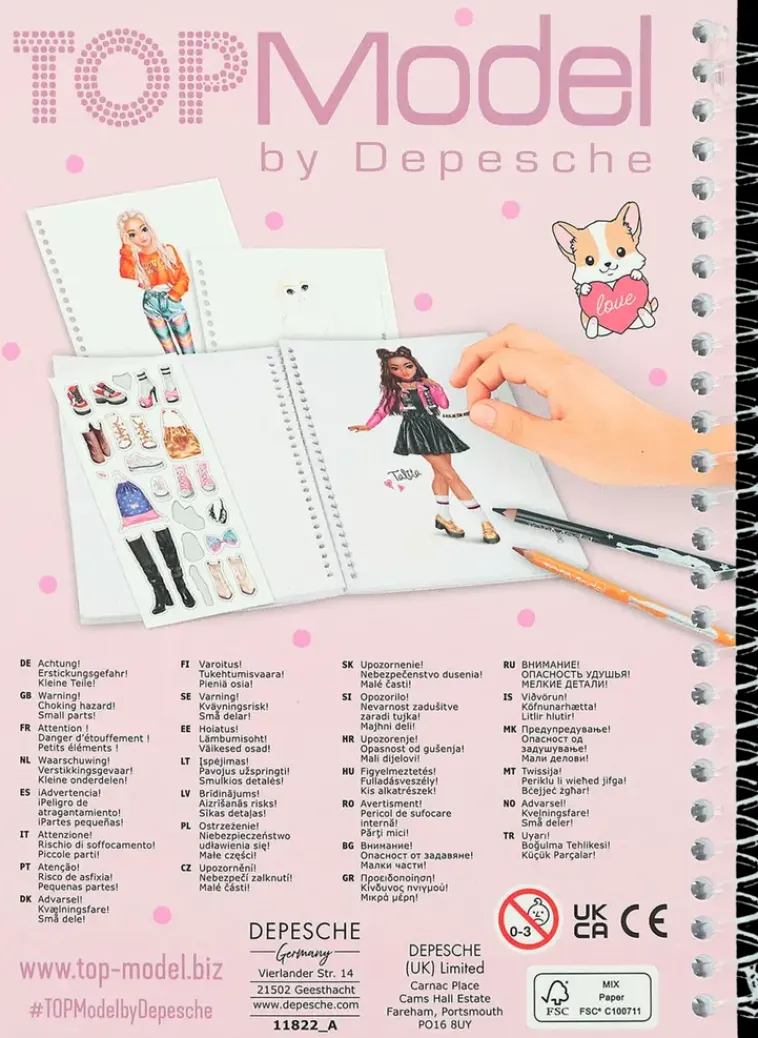 Topmodel Taskuvärityskirja Kulkee Kanssasi Kaikkialle Näppärän Kokonsa Ansiosta! Kirjan Sivuille Voit Suunnitella Upeita Asukokonaisuuksia Ja Luomuksesi Viimeistelet Mukana Tulevien Tarrojen Avulla!