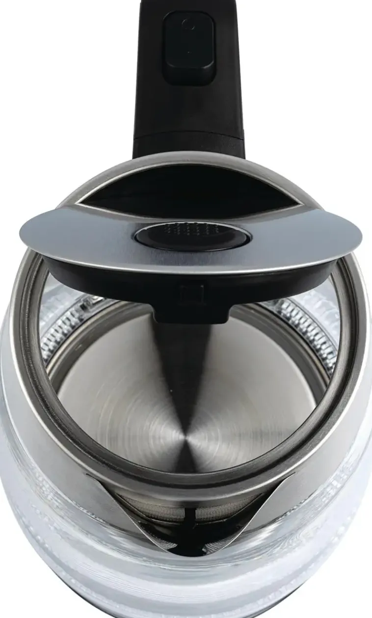 Tyylikäs Lasinen Vedenkeitin On Valmistettu Korkealaatuisesta, Kuumuutta Kestävästä Borosilikaattilasista. Vedenkeitin Sopii Päivittäiseen Käyttöön Ja Sen 2200 Watin Teho Keittää Veden Nopeasti, Jopa 1,8 Litraa Kerrallaan. Turvallisuuden Vuoksi Vedenkeitin Sammuu Itsestään Kun Kiehumispiste Saavutetaan Tai Jos Keitin Kytkeytyy Päälle Tyhjänä. Piilotettu Lämpöelementti, 360° Pyörivä Pohja Ja Kahvan Painikkeesta Avautuva Kansi Tekevät Vedenkeittimestä Helpon Käsitellä Ja Käyttää Vain Yhdellä Kädellä.