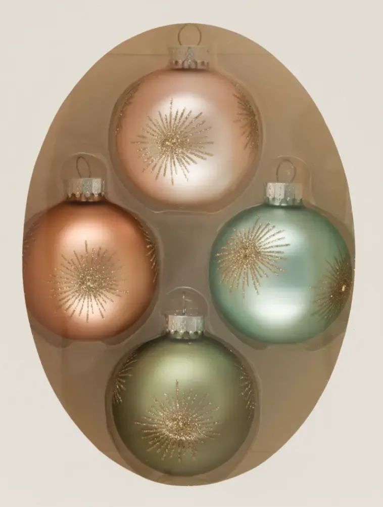 Joulupallo Lasia. Halkaisija 6,5 Cm. Pakkaus Sisältää 4 Kpl.