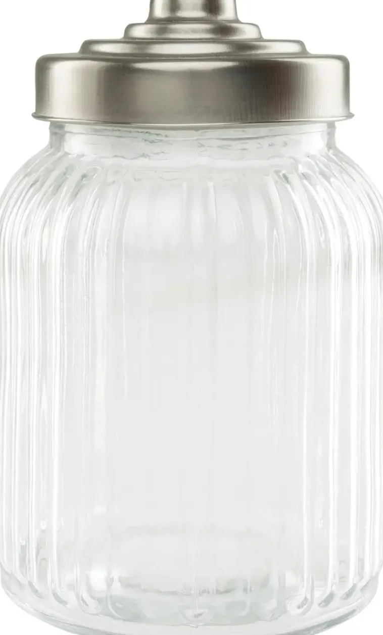 Kannellinen Lasipurkki, Jossa Voi Säilyttää Erilaisia Kuiva-Aineita. Tilavuus 0,64 L.