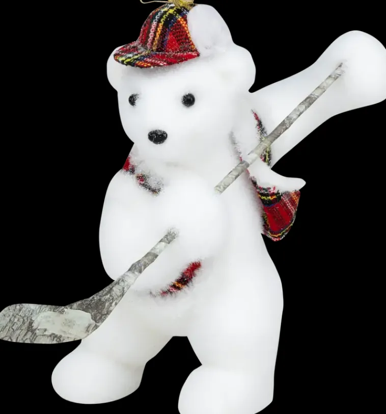 Jääkiekkoileva Nallehahmo On Pukeutunut Punaiseen Lakkiin Ja Liiviin. Korkeus 28 Cm. Vain Koristekäyttöön.