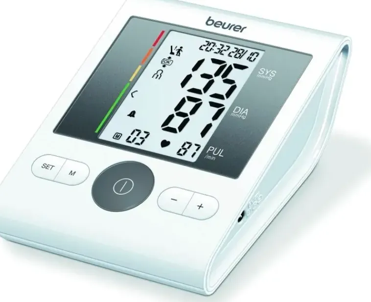 Beurer Bm28 On Täysin Automaattinen Verenpainemittari, Joka Mittaa Ylä- Ja Alapaineen Sekä Sykkeen Olkavarresta. Laite Varoittaa Myös Mahdollisesta Rytmihäiriöstä.