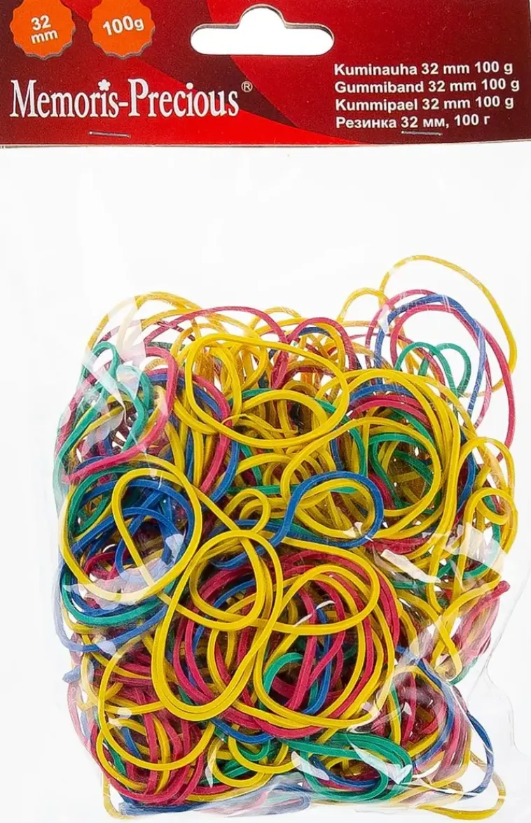 Kuminauhapakkaus, Jossa 100 G Värillisä Kuminauhoja. Kuminauhan Koko: 32 Mm.