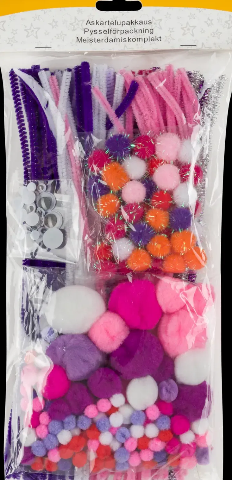 Askartelupakkaus Sisältää:104 Kpl Piipunrasseja135 Kpl Pompuloita30 Kpl Liikkuvia Askartelusilmiäei Sovellu Alle 3-Vuotiaille Lapsille. Sisältää Pieniä Osia. Tukehtumisvaara. Säilytä Tuotteen Tiedot Mahdollista Myöhempää Tarvetta Varten.