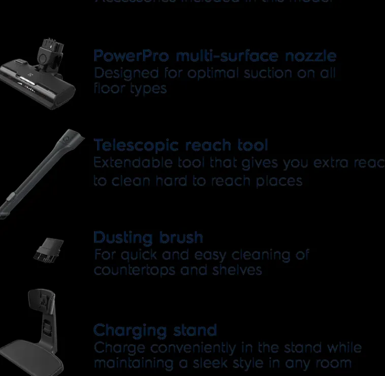 500 Green Varsi-Imuri, 21V Lithium Akku, Käyttöaika 35Min, Pelkän Käsi-Osan Käyttöaika 50Min, Äänitaso 79 Db(A), Grab&Amp;Go Lattialatausteline. Mukana: Teleskooppirakosuulake, Pieni Harjasuulake. Brush Roll Clean, Ja Led Valo Suulakkeessa. Suodatin: Pestävä. Väri: Recycled Black.