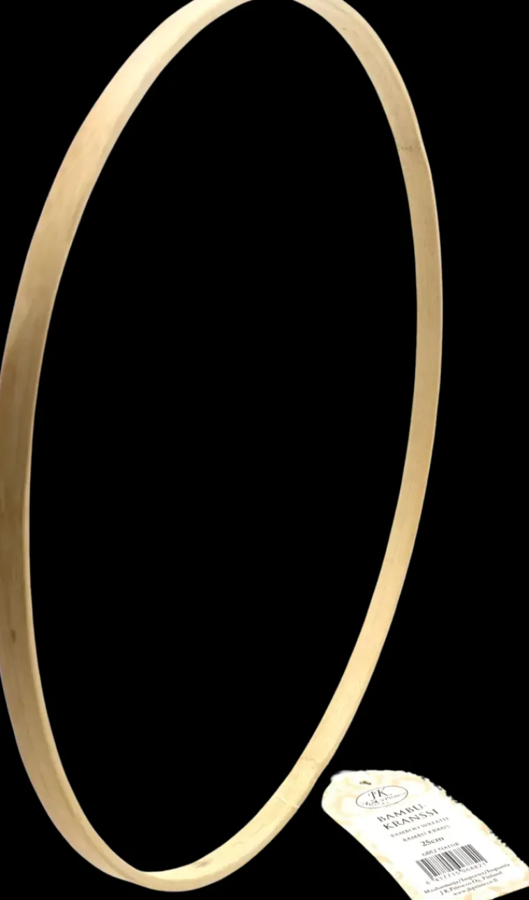 Bambukranssi Askarteluun Ja Koristeluun. Pyöreän Bambukranssin Halkaisija On N. 25Cm, Leveys N. 1Cm Ja Paksuus N. 0,5Cm.
