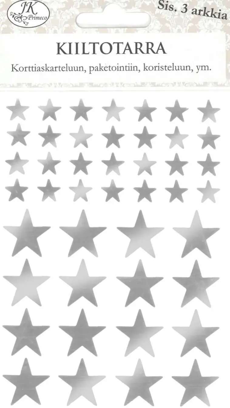 J.K. Primeco Askartelutarvikkeet-Kiiltotarra Tahti Pieni Hopea 3Ark/Pkt