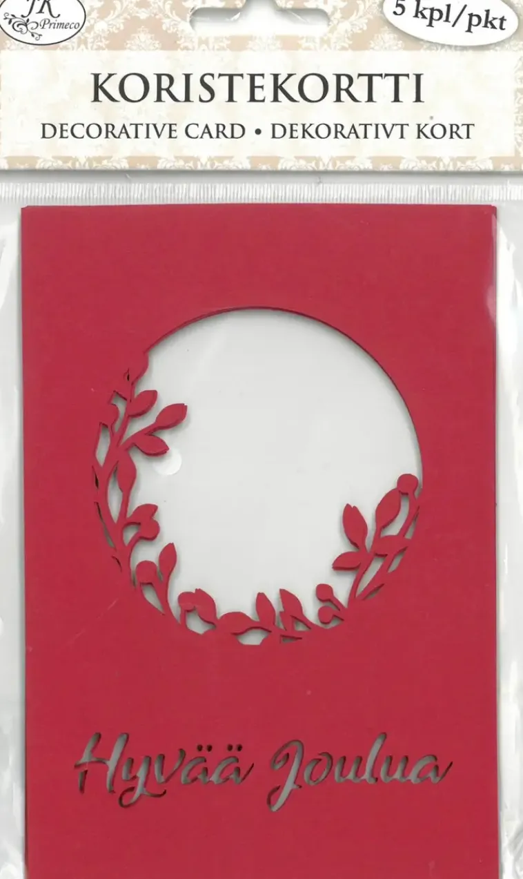 J.K. Primeco Askartelutarvikkeet-Koristekortti Koynnos Ja Teksti Punainen 5 Kpl
