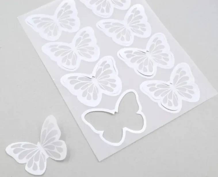 Kuultokoristeet Askarteluun Ja Koristeluun. Pakkaus Sisältää 8 Kappaletta Koristeperhosia, Jotka On Valmistettu Kuultopaperista. Yhden Perhosen Koko On N. 4 X 3Cm.