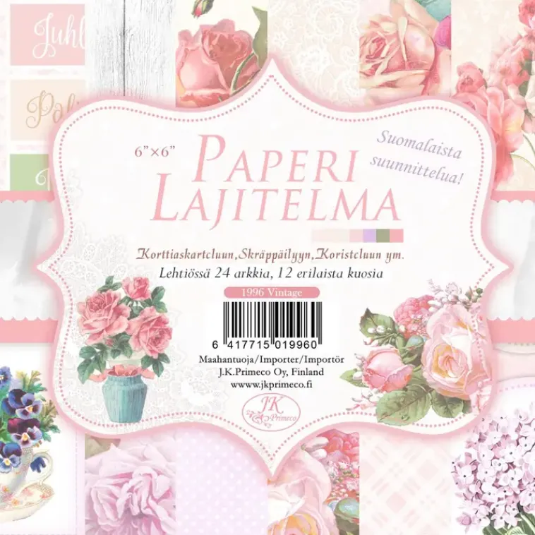 J.K. Primeco Askartelutarvikkeet-Skrappayslehtio Vintage 6″X6″ 24Arkkia