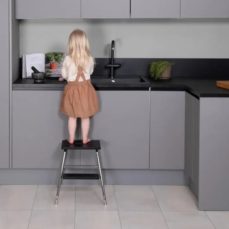 Lanka ja Muovi Eteiskalusteet-Porrasjakkara Lm 185, Kromi/Musta