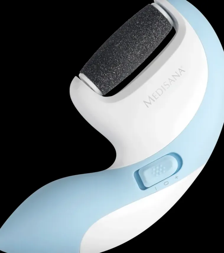 Medisanan Elektronisella Jalkaraspilla Poistat Hellävaraisesti Ja Tehokkaasti Kovettumat Pois. Tällä Laitteella Saat Pehmeämmät Kädet, Jalat Ja Kyynärpäät. Laitteen Mukana Tulee 3 Irroitettavaa Hiontarullaa: Extra Karhea, Karhea Ja Hieno.