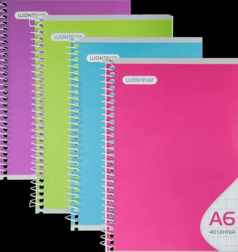 Kierrevihko Raikkailla Värillisillä Kansilla, 7X7 Mm Harmaa Ruudutus. Tuotteen Koko A6 (105X148 Mm), Jossa 40 Lehteä (80 Sivua). Kierresidonta Pitkällä Sivulla Vasemmalla.Valmistusmateriaali Valkoinen 70 Gsm Hienopaperi Ecf.