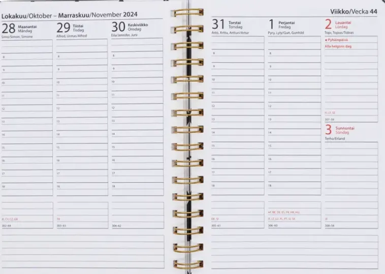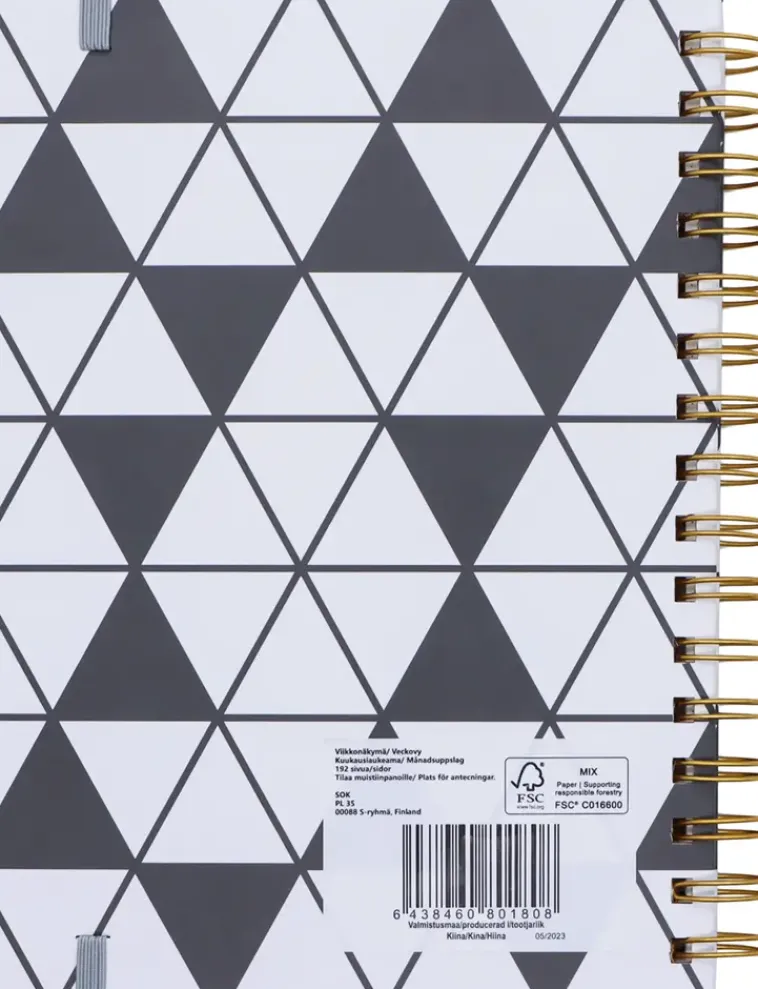 Poytakalenteri A5 Kierresidottu, Musta-Valkoinen Kalenterit