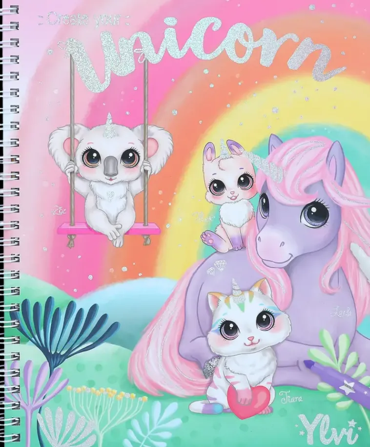 Taianomaisen Ylvi-Värityskirjan Useilla Sivuilla Seikkailevat Ihanat Yksisarviset. Kirjan Mukana Saat 8 Tussia, Joissa Jokaisessa Sekä Paksumpi Että Ohuempi Pää. Mukana 7 Eri Väriä Sekä Taikatussi, Jonka Avulla Saat Taiottua Uudet Värit!